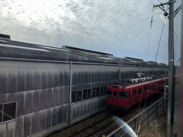 それでこの列車に終点まで乗車すれば、この旅でまだ乗っていなかった犬山線の一部、常滑線の一部、そして空港線に乗ることが出来、名古屋鉄道全線完乗を達成することができるのですが、名鉄で最後に乗るべき列車は既に決まっているので、とりあえず犬山駅で下車することに。その手前の犬山検車区という車両基地には、先程乗った小牧線に乗り入れている名古屋市営地下鉄上飯田線の車両や、昨日乗った豊田線の地下鉄乗入用車両などが停まっているのが見えました。