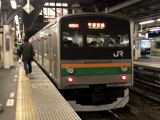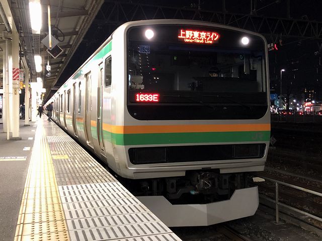 というわけでまずは仕事を定時で上がって帰宅後、風呂に入って身支度を整えてから、重めの旅行鞄を提げつつ出発。宇都宮駅まで出て、19時59分発の上野東京ライン熱海行き普通列車に乗車。