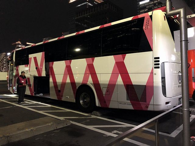 この日は、仕事を終えてから出発し、JR上野東京ラインの列車で東京駅まで出て、東京駅鍛治橋駐車場からウィラーエクスプレスの名古屋方面行き夜行バスに乗り込むという行程。