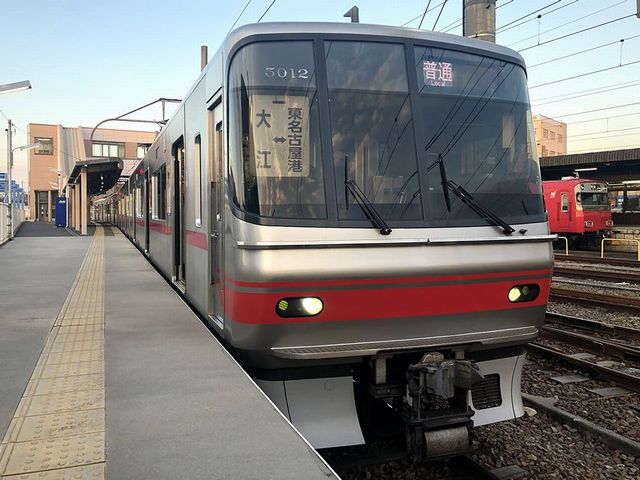 【金山駅に入ってくる名鉄岐阜行き普通列車】