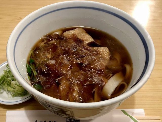 【金山駅かどや下りホーム店のかき揚げきしめん(600円)】