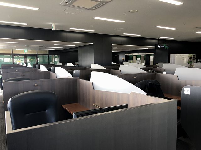 エレベーターに乗るにも人が集中していたためか何度か待たされ、5階に上がっても軽く行列が出来ていたので、その間、買えるかどうか気を揉んでいたものの、残り数席というところで何とか無事、ロイヤル席を購入することができました。で、このロイヤル席。最近流行り?の、パーティションで仕切られた各席にモニター完備の個席タイプで、周囲が気にならないというのは良いですね。また、以前の屋外観戦席部分は残されていて、(席指定はなく)自由に使えるようになっていました。