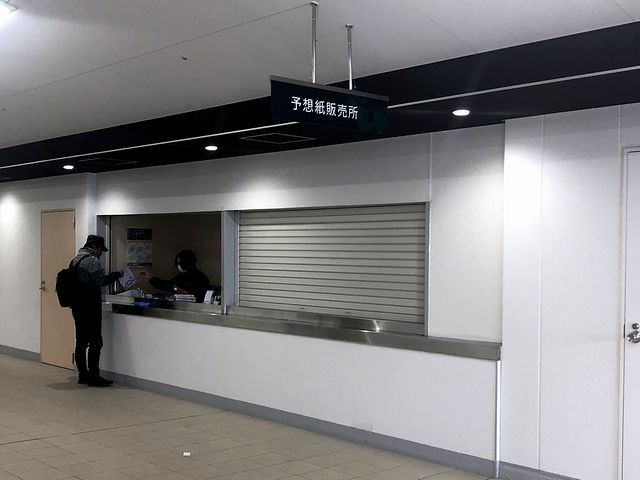 パドックは以前と変わらない印象。黒板にチョーク書きの出走表ももそのままで、更にチョークで書かれる、ちょっとクセのある書体もそのままだったのには驚きました。そして、パドック付近にあったかつての指定席・特別観覧席販売所(8年前に来た時も既に閉鎖されていた)は窓口が埋められ鉄柵が撤去されていて、そこに非常用発電機が設置されていました。