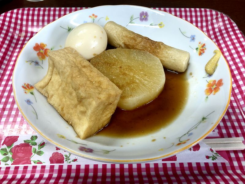 さすが姫路らしく、生姜醤油をかける「姫路おでん」というのが嬉しいですね。で、どれも味が程よく染みていて、そこに生姜醤油が味をキリっと引き締めて、これが、もう。