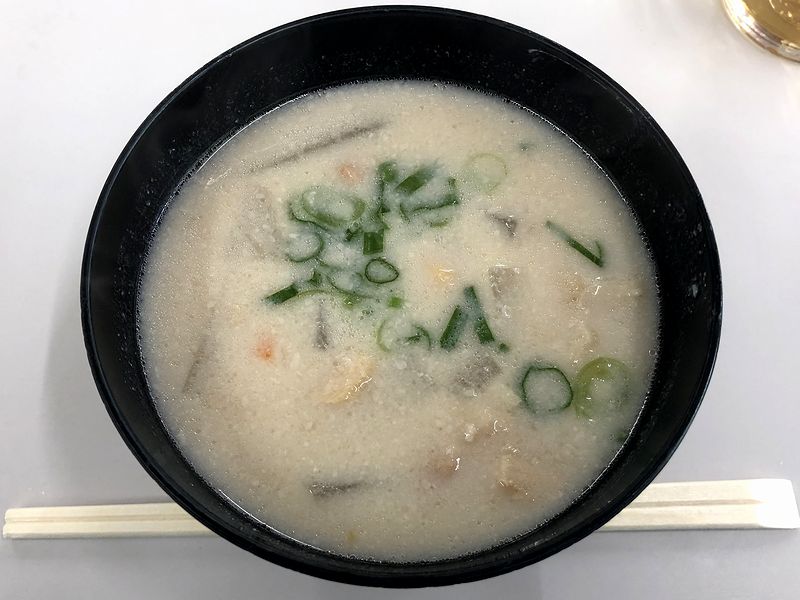 そんな中から、「かす汁始めました」と書かれた短冊を見つけたので。この日はお日様こそ出ていたものの、風が強くて外でレースを見ていると冷えたんですよね。で、そのお味ですが、気のせいか酒粕自体が美味しく感じてしまうのですが、他の具は鮭と根菜類とベーシックなもの。味付けも程よく、とても体が温まりました。
