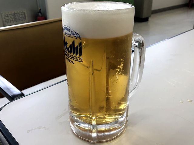 たこ焼きのお供には、キンキンに冷えた生ビールを。外が寒くても、個人的にこれだけは外せないというか。