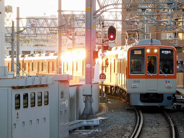 【大阪梅田駅(阪神)に停車中の山陽姫路行き直通特急】