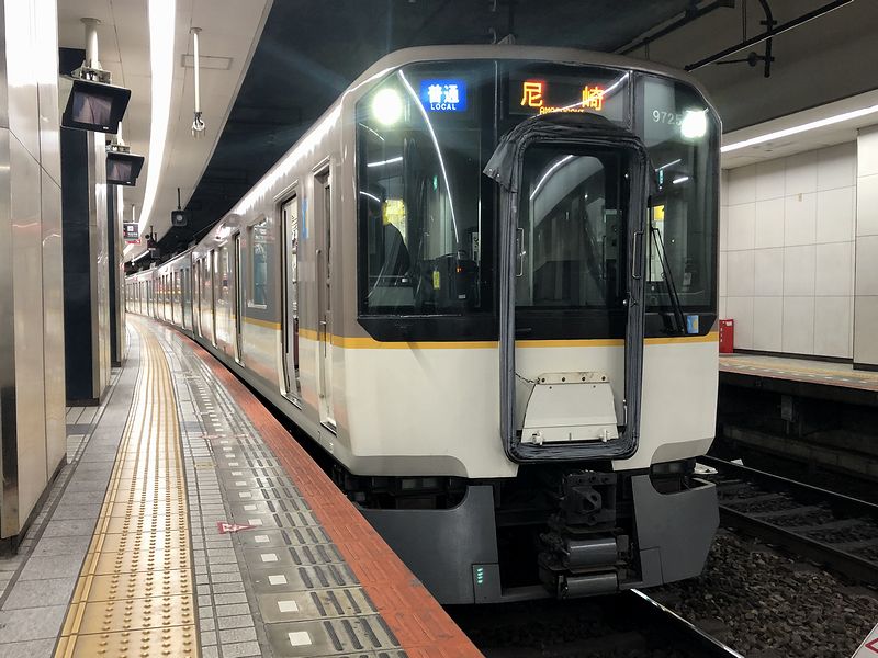やがて定刻となり、大阪難波駅を発車。モーターを制御するインバータの音がカッコイイですね。加えて3年前に一度乗っているとはいえ、改めて乗るとなるとその心持ちも違ってくるようで、ちょっとだけワクワクしてきました。そして約2分で到着した、最初の停車駅である桜川駅では、約6分の停車。というのも、近鉄と阪神の境目は、路線上は大阪難波駅なのですが、乗務員が交替するのはこの桜川駅とのことで、停車中に阪神の乗務員に替わった筈です。