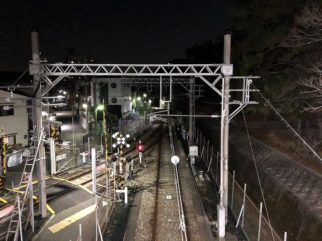 武庫川駅で列車を降りた後は、まず、先程はスルーしてしまった、武庫川線ホーム北側に伸びる線路をチェック。というのも一見するとただの引き揚げ線に見える線路ですが、これが廃止となった武庫大橋駅へと向かう区間のごく一部であると共に、車両の出入りに使用される阪神本線武庫川信号所へ向かうための大事な線路であるからでして。それでこの配線、アラビア数字の4の字ようになっていて、縦の線が武庫川線、横の線が阪神本線、そして斜めの線がそれらを繋ぐ武庫川連絡線で、横線と斜め線が交わる頂点にあるのが武庫川信号場、という感じで。で、阪神本線の列車に乗り換えがてら、今度は縦線と斜め線が交わる頂点部分をチェック。ここも明るければ、廃止前の面影がもっと偲べたかもしれないのですが。
