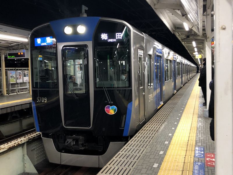 武庫川線を乗り終えた後は、次の目的のために先程乗り換えた尼崎駅まで。そのために、6時8分発の大阪梅田行き普通列車に乗車。やって来たのは「ジェットカー」の中でも、平成27年(2015年)から導入が開始された最新型で「ジェット・シルバー5700」の愛称を持つ5700系電車。乗り込んだ先頭車の車番が5709(5701形)ということは、昨年(2019年)製造の(この時点で)最も新しい車両じゃないですか。