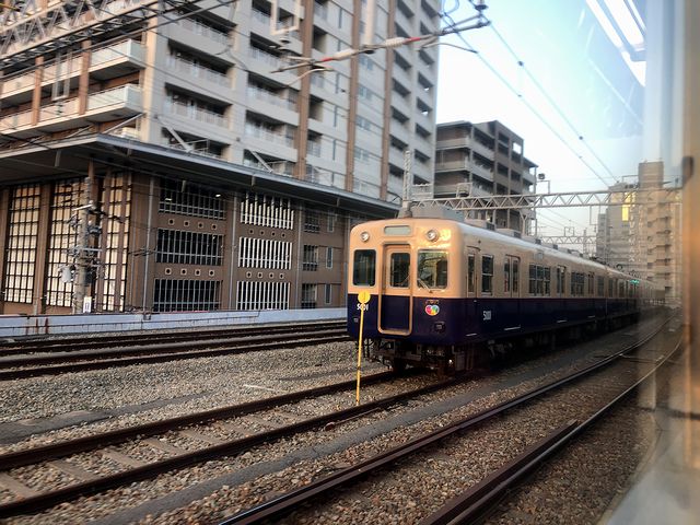 最初の停車駅である尼崎駅では、結構な数の乗客が降りて、同じくらい乗車。席確保の面から言えば、やっぱり、大阪梅田駅から乗って正解でした。で、発車後、駅構内の引き上げ線に、懐かしいタイプの「ジェットカー」のうち、トップナンバーの編成が停車していました。この5000系という車両、現在でも4.5km/h/sという鉄輪式の鉄道では日本最高の起動加速度を誇るので、できれば今回の旅で乗ってみたいと思っていまたのですが、そのチャンスは無いまま終わりそうです。