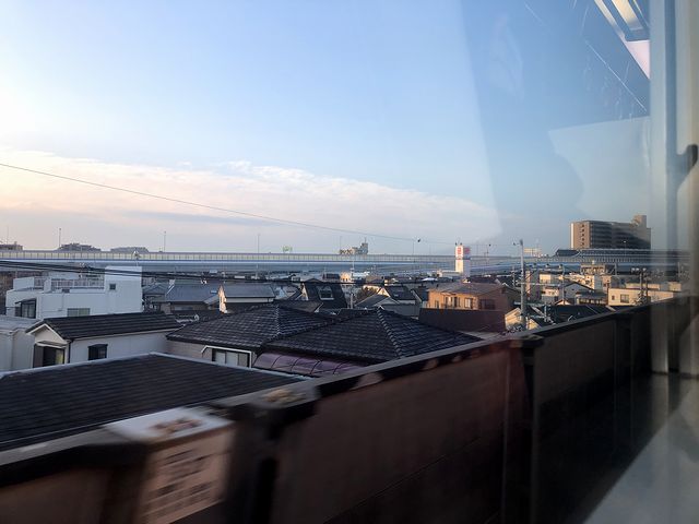 尼崎駅を出た列車は、その先暫く高架線から、遠くに海を感じることもあるけど、基本的には人口密度の高そうな市街地を眺めつつ走行。住宅や商業ビルだけではなく、工場も混ざります。毎日乗る人にとっては退屈な景色でしょうけど、こちらは普段全く見慣れていない景色の分、眺めていて退屈はしません。そんな中、直通特急はあまり停車せずに進むのですが、停車する甲子園駅、西宮駅も、先程の尼崎駅同様、乗客の入れ替わりが結構ある印象です。