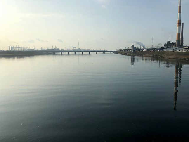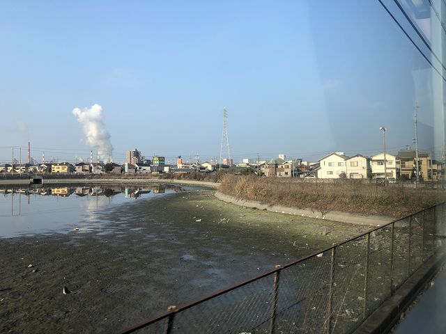 飾磨駅を発車して以来、向かい側の窓越しに見える景色は、市街地と、その向こうにというか海沿いに大きな工場という感じ。線路は高架線から夢前川を渡って夢前川駅に停車すると、半分くらいの乗客が下車。ここから先は地平を進みます。で、次の広畑駅付近まで車窓から見える見える工場は、この網干線の建設が許可された理由のひとつとなった、旧日本製鐵広畑製鐵所、現在の日本製鉄瀬戸内製鉄所広畑地区でしょうか。