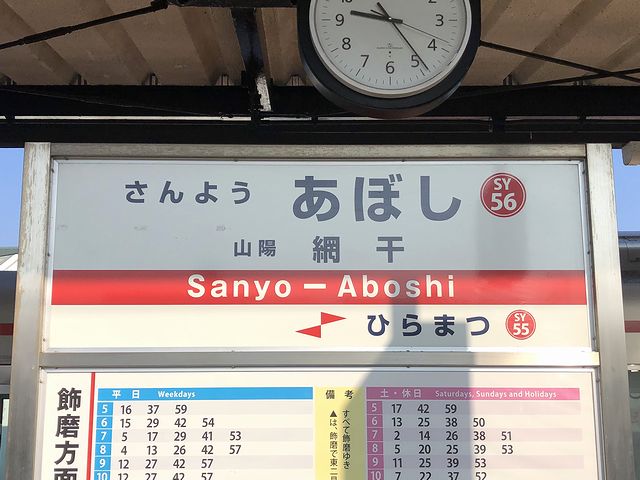 「山陽そば」でうどんをいただき満足した後は、山陽網干行きの普通列車に乗って網干線に乗ります。先程、直通特急を降りてすぐにうどんをいただいたのは、何も食い意地のためではなく(いや、食い意地が張っているのは間違いないですが。)、網干線の列車の運転間隔のおかげで、次の列車まで余裕があったからでして。