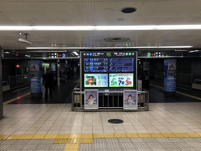 神戸高速線が終わる次の湊川駅までは0.4kmしかないので、地下を走ってあっという間に到着。湊川駅も地下駅なので、ほんと、なし崩し的に乗り終わってとまった感が。で、この時、「これで神戸高速鉄道の全線に乗ったぞ」と思ったのですが、この当時というかこの記事を書いている今(令和2年5月下旬)も、神戸高速鉄道は、新神戸駅と谷上駅を結ぶ北神急行電鉄北神線の、第三種鉄道事業者になっていたんですね。(令和2年6月1日付で神戸市に事業譲渡になる予定だとか。)