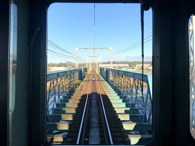 小野駅では7分と長めの停車時間が取られ、最後の列車交換をしてから発車。この先もやや平坦な地形が続き(と言っても油断するとすぐ勾配になっているのですが)、再び農地の間を進みます。そして最後の停車駅である葉多駅に停車後、加古川を長い鉄橋で渡ると左手からJR加古川線と合流。それと寄り添うようにして、定刻の8時4分、終点の粟生駅に到着しました。ここまで、新開地駅を出てから79分かかりましたが、変化に富んだ風景で運転台後ろに立つのが苦にならなかったというか、これまで一度も乗ったこと、いや目にしたこともなかった神戸電鉄が、いっぺんで好きになりましたね。