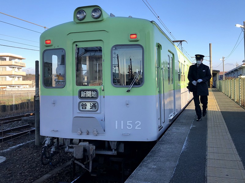 それでこの1000系。主電動機の制御方式は抵抗制御で、車体の仕様は両開き扉を持つ全長約18mのロングシート車というのは共通なれど、製造年次が昭和40年(1965年)から平成3年(1991年)と長きに渡り、その間の車両運用の変更などもあるため、当初は片側2扉車だったのが3扉車となり、車両により運転台(片側・両側)や搭載機器などのバラエティーが豊かなのですが、この編成は3扉・3両編成で製造されたデ1150形・サ1250形、もしくは1150系とも言われるグループのうち、昭和52年(1977年)に製造されたもの。