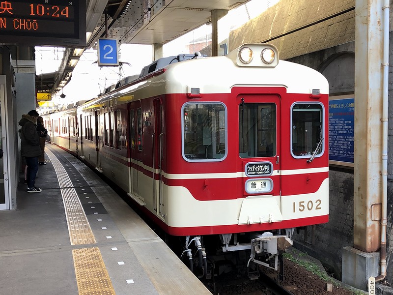 その都市公園線をこれから走るのが、横山駅10時24分発の、ウッディタウン中央行き普通列車。列車を舞っていると入ってきたのは1000系の3両編成。先頭車の先頭部分に付けられたナンバーを見ると「1502」となっていたので、1500形・1600形や1500系と呼ばれる、平成3年(1991年)に2編成だけ製造されたグループのよう。それにしても、先に乗った2000系の検査時予備用として製造されたとウィキペディアには書いてあるのですが、なぜ新しい2000系や3000系ではなく1000系が製造されたかについては、私自身、神戸電鉄に詳しくないのでちょっと謎というか。ちなみに、製造当初より公園都市線への入線が予定されていたため、1000系では唯一、製造当初よりワンマン運転対応となっています。