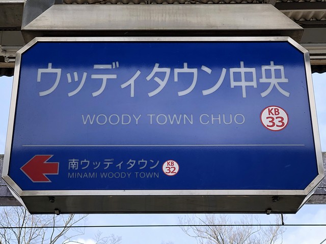 【ウッディタウン中央駅の駅名標】