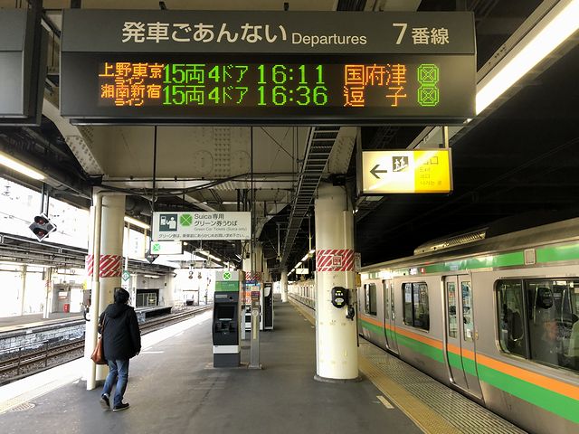 この日は、前日に荷物を詰めたキャリーバックを引きずって出勤。午前そして昼過ぎと普通に仕事して、午後3時過ぎに仕事を切り上げることが出来たので、すぐさま宇都宮駅へと向かい、16時11分発の上野東京ライン国府津行き普通列車に乗車して上野駅まで。平日だとちと高くなるものの、この時間帯、ガラガラのグリーン車でビールでも飲みながらゆったりと過ごすのは、何とも気分がいいものですね。ですが列車は、蓮田駅と東大宮駅の間で急停車。踏切の停止信号とのことで、程なく安全確認か取れ運転再開。更に、上野駅手前でも停止。この日のこの時間帯、京浜東北線の新子安駅で人身事故が発生した影響で東海道本線がストップしており、それが上野東京ラインまで波及してきた模様。それにより、この列車が本来到着する予定だった上野駅の7番線ホームには先行する列車が停止中のため、到着ホームを6番線に変更して、定刻より5分遅れの18時1分に到着しました。