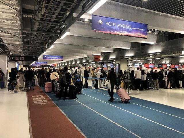 列車は定刻の13時11分、関西国際空港駅に到着。早速空港の保安検査場に向かおうとしたところ、搭乗予定のジェットスター・ジャパンGK204便は、使用機材到着遅れによって、当初の14時5分発から25分遅れの14度30分発に変更となったとのこと。こればっかりはどうしようもないので、とりあえず保安検査を受けてしまうことに。それで今回の保安検査もなかなかに厳しく、靴は脱がなくても大丈夫だったものの、コートと、その下に来ていたジャケットまで脱ぐよう指示されました。