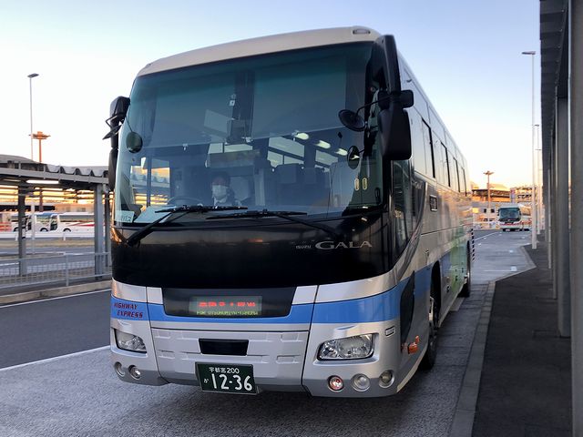 成田空港からはスカイライナーで上野に出てJRで帰るというルートを予定していたのですが、飛行機が遅れた、それも丁度スカイライナーの運転間隔にマッチしない時に到着したらしく、とりあえずルート検索したところ、成田空港第3ターミナルから16時55分発の高速バス「マロニエ号」で宇都宮まで帰るのが一番早く着くとの結果が。スカイライナーとJRの組み合わせで帰れば、上野駅でつまみや駅弁、そして酒類を仕入れて、宇都宮まではグリーン車で人目を気にすることなくゆっくり飲めることはわかっていたのですが、ここまで来ると一刻も早く家に帰りたかったのと、成田空港からだと高速バスに乗ったことがなかったので、そのマロニエ号を利用してみることに。