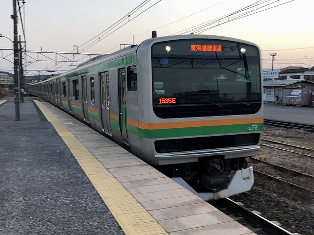 【某駅に入ってくる上野東京ライン小田原行き普通列車】