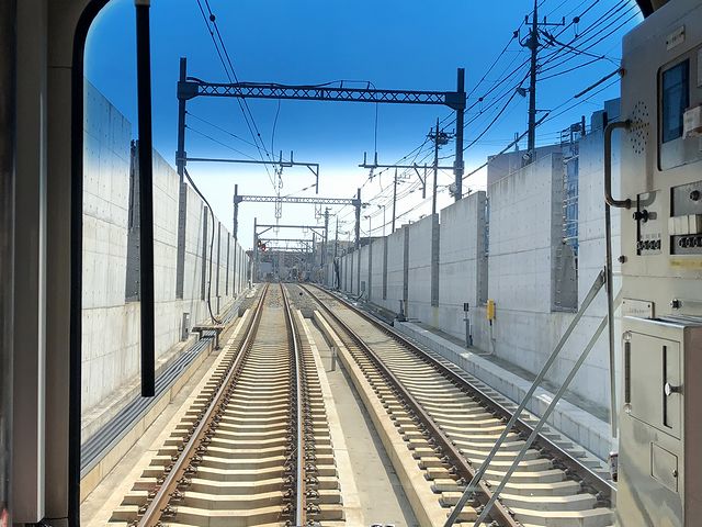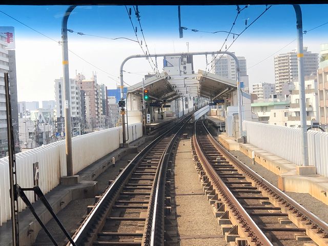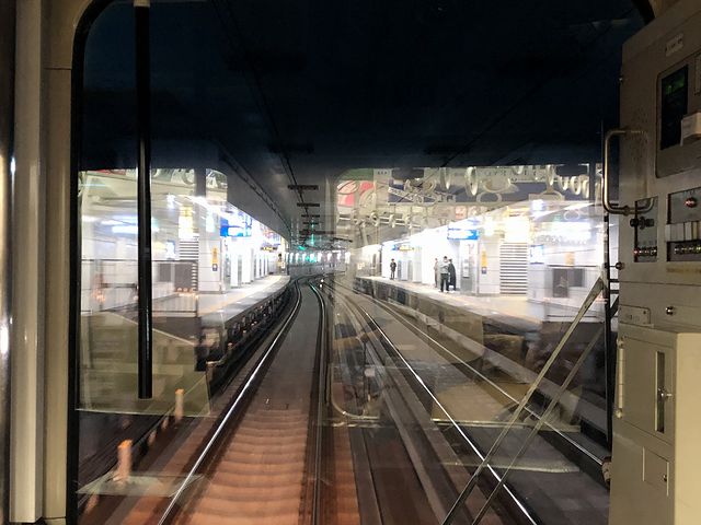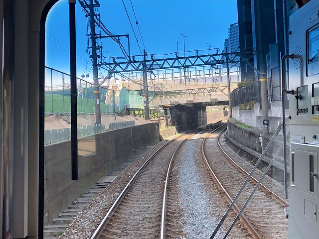 車内はかなり空いていて、8人掛けのロングシートに座っているのは数人ほど。ただ、運転席のある乗務員室直後の特等席(立席)は先客がいたので、おとなしくロングシートに着席。列車は2分停車ののち泉岳寺駅を発車すると、ちょっとだけ第一京浜の下を走ってから地上に出たところで品川駅に到着しました。