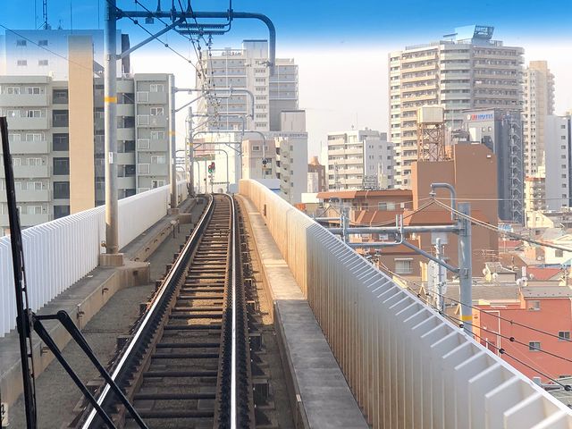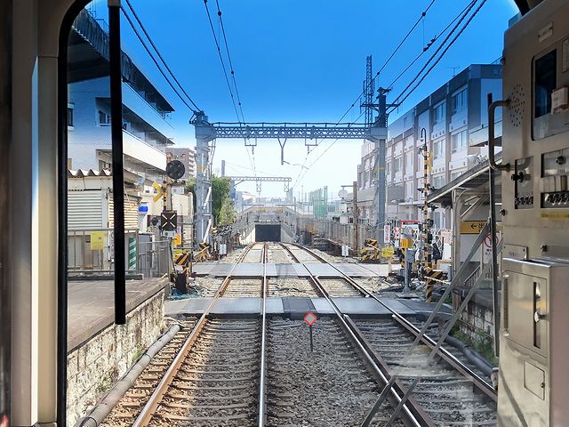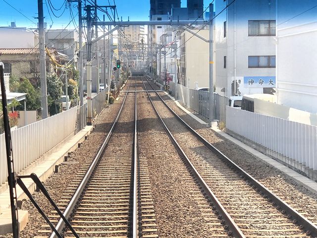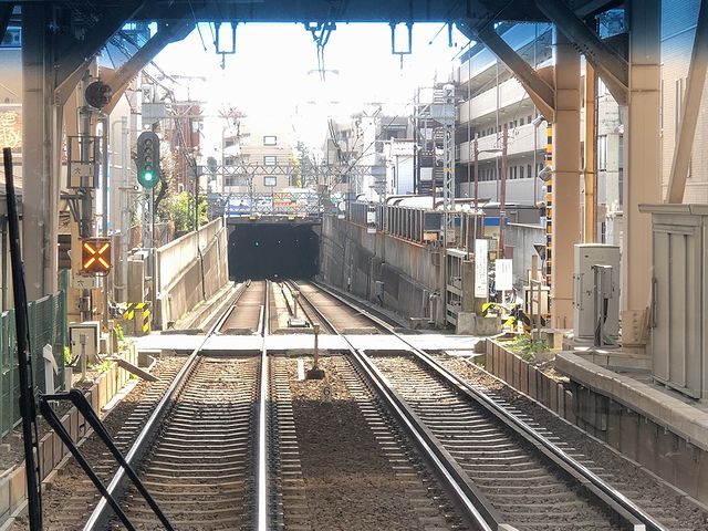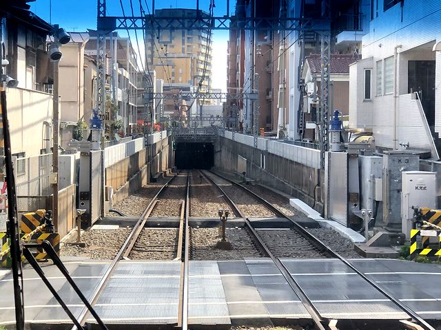 糀谷駅を発車した列車は、高層マンションやアパート、ビルに事業所など雑然とした風景の中、高架線から一度地上に。そんなに長くない地上区間でも、踏切が複数あるんですね。そしてその後、地下に潜って大鳥居駅に停車。発車後は再び雑然とした地上に出て、穴守稲荷駅へと。