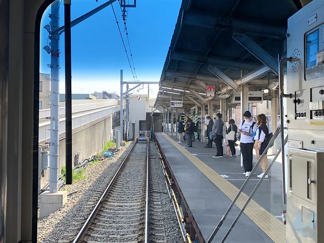 川崎大師駅を発車した列車は右にカーブすると再び直線区間に。車窓から見える景色は、先程までのマンションに加え、小規模な事業所や戸建の住宅も増えてくる中、東門前駅に停車。そこを発車するとすぐに地下に潜って大師橋駅に。このあたり、先程乗った空港線と、間に多摩川を挟んだ直線距離で2kmと離れていない(某地図サイトで計測したら1.7kmくらいだった)のですが、沿線の雰囲気は、何故かわかりませんが、わりと違うように感じます。