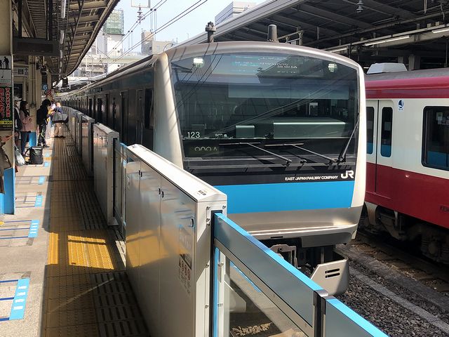 そんな横浜シーサイドラインの金沢シーサイドライン(以下、シーサイドライン)に乗るべく、横浜駅で京急の快特列車を降りたあと、JR根岸線のホームへ速やかに移動。11時4分発の根岸線大船行きに乗って18分間。新杉田駅へと到着しました。