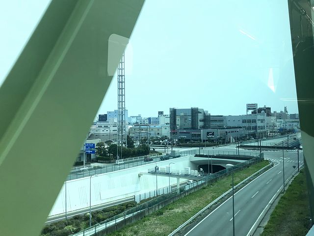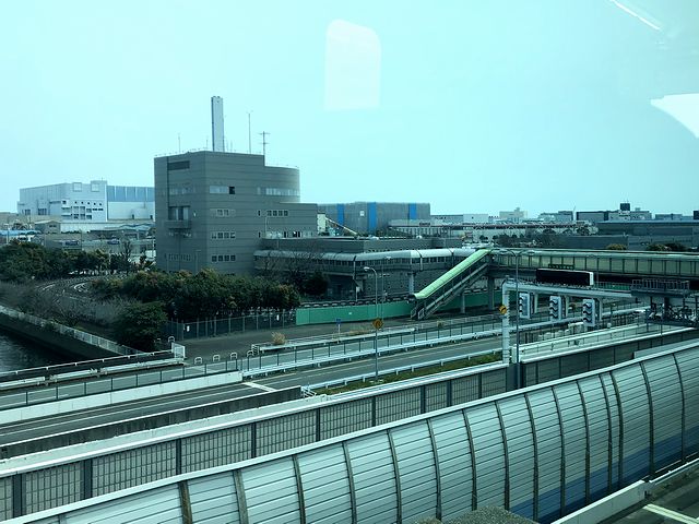 乗り込んでからあまり待たず、11時30分の定刻となり列車は新杉田駅を発車。序盤は、左側に併走する首都高速湾岸線が視界を塞ぎますが、最初の停車駅である南部市場駅周辺には、クルマや人で賑わっているのがわかります。で、次の鳥浜駅を過ぎると併走する首都高速湾岸線の高度が下がるのですが、こちらも一緒に高度が下がっていき、地上駅の並木北駅に停車。個人的に新交通システム=高架線という思い込みがあったので、かなり意外に感じますね。