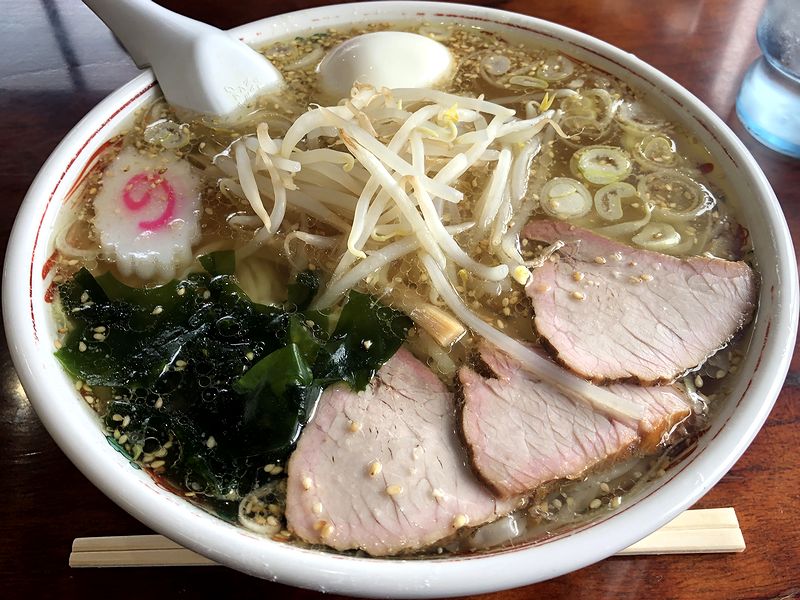それでまずはスープからいってみたところ、鶏メインの出汁が丁度良く、塩メインの味付けも丁度良く。そこに胡麻がの香ばしさが加わって、もう。(当たり前ながら)麺を食べさせるに十分なスープですが、その美味さにレンゲが止まらなくなりそうに。そしてそこに合わせるのは、相変わらず絶品の手打ち麺。適度に捻り波打った形状は啜り心地が良く、また歯を入れても手練が打ったグルテンの力が引き出されたを感じるヌクヌクした噛みごたえが、また。個人的好みを加味すると、これ以上の白河系の麺って、なかなかお目にかかれないと思います。それと、スモーキーで肉の味を凝縮したようなミシっとした食感のチャーシューや、もやしのシャキシャキ感、ワカメの風味も良く、更にトゥルントゥルンのワンタンは、麺と一緒に頬張ると口の中で食感の対比を味わえます。あと、追加した塩ゆでたまごは、黄身の火の通し加減が絶妙。しっかり目の塩気が、逆に卵そのものの味を引き立てていました。