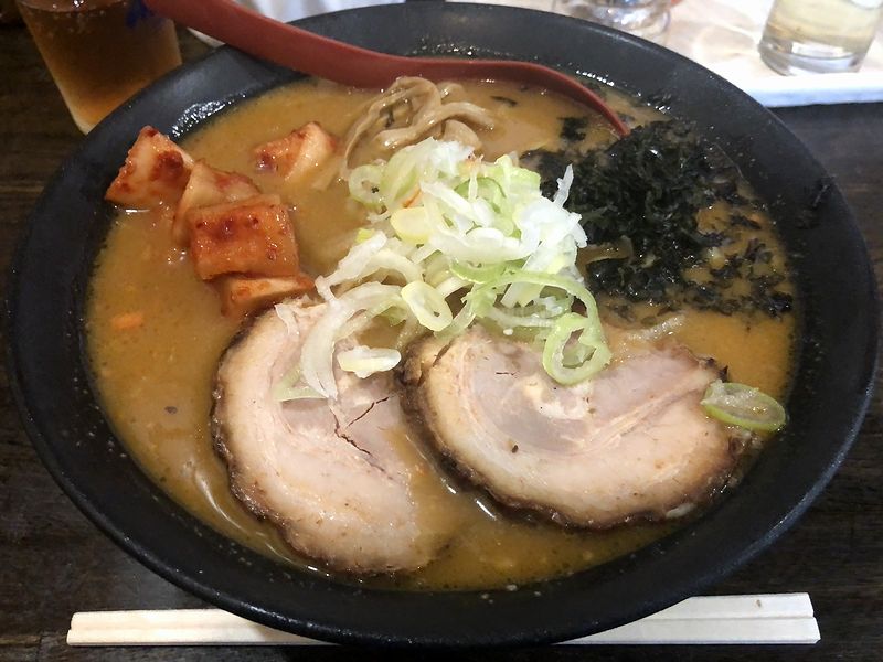 それで今回は、こちらのお店でこれまでいただいたことがない品の中から、冷たいラーメンを味噌味で。注文時、メニュー写真にも載っている通常の白菜キムチではなくカクテキになる旨を確認されましたが、全く問題ないということでお願いしました。