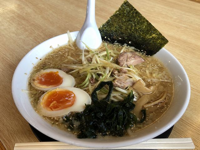 お店には、土曜日の午前11時半頃到着したところ、駐車場は結構いっぱい気味で、中には栃木県南のナンバーのクルマも。幸い店内のテーブル席が空いていたようだったので、入り口のところに置いてある券売機で食券を購入してから入店。久しぶりの越県訪問だったので余計なこと考えず、というかアタマ悪く「たべたいものをたべる。」ことにしました。