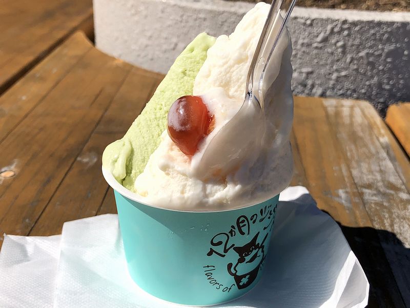 まずは今回の、失礼ながらネタ枠として選んだ喜多方産というアスパラガス。もっともネタと言っても、台湾にはアスパラガスの甘いジュースもある(私が敬愛してやまない、乗り鉄における心の師匠たるかの宮脇俊三先生も気に入っておられた。)わけだから、そんなにおかしくはないとは思うのですが。で、早速一口いってみると、これが!ベースとなるサッパリ感もありつつコクのあるジェラートに、グリーンアスパラガスのフレッシュな青い風味が加わって、私の味覚だと、正直なところ諸手を挙げて無条件で「美味しい」と言い切れるわけではないのですが、いただくうちに不思議と癖になるクセがある味わいというか。これは良い牛乳と良い製法によるジェラートの懐の広さに加えて、アスパラガスもしっかりした物が使われていると思った次第です。