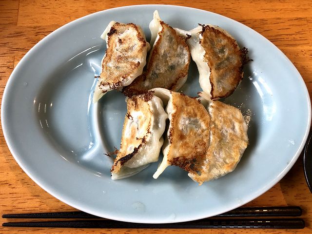 皮 こちらは、一緒にいただいた品。皮はやや厚めでしっかりしており、焼き具合も丁度良く。餡もニンニクが割と効いてるベーシックなものですが、豚肉と野菜のバランスが良く、味加減も良い感じです。