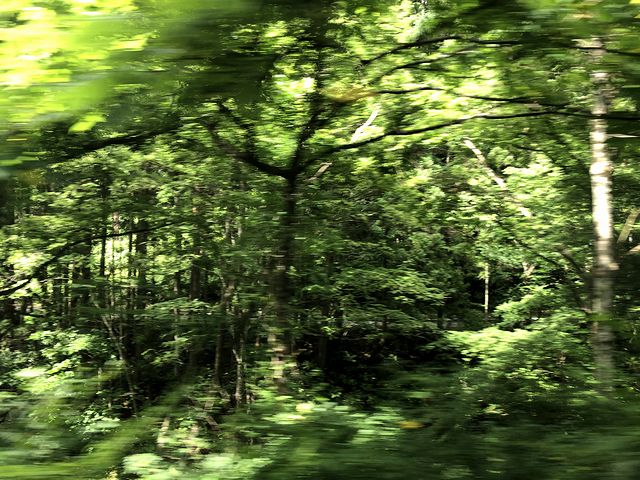 一方列車は、エンジンを震わせて人跡稀な山中に分け入っていきのす。そこにいつの間にか寄り添ってくるのが、北上川水系の米内川。列車は勾配を抑えるためカーブを繰り返し、この米内川と幾度となく交差しながら列車は高度を上げていきます。そして短いトンネルをいくつか抜け、峠越えもいよいよという雰囲気になったところで、車窓には、白い樹皮の木々とはクマザサが茂る林が現れました。クマザサ自体はわりと見かける植物ですが、林の下草として生えている様は、厳しい自然を連想させますね。そしてそんな中、列車は廃止となった大志田駅、浅岸駅の後を通過した筈なのですが、正直良くわからず。ですが、浅岸駅跡を通過した後、全長2236mの山田線最長となる第一飛鳥トンネル手前に建てられていた慰霊碑(のような構造物)には気付くことが。気になって後で調べたところ、そこには、トンネル建設工事の際に殉職された8名の名前が刻まれているそうで。