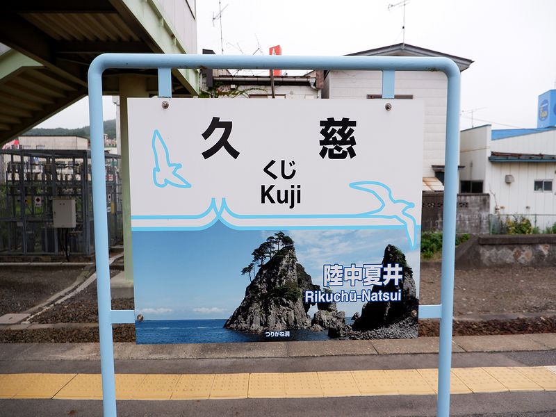 久慈駅を出た列車は、まず久慈川を渡り、久慈の市街地を走行。陸中夏井駅に停車し、夏井川を渡ると市街地が終わり、森の中を走って侍浜駅に停車。駅名に浜と付きますが、海岸線からはかなり離れており、また侍浜自体も、浜と付きますがダイナミックな岩場の海岸線が続くそうで。