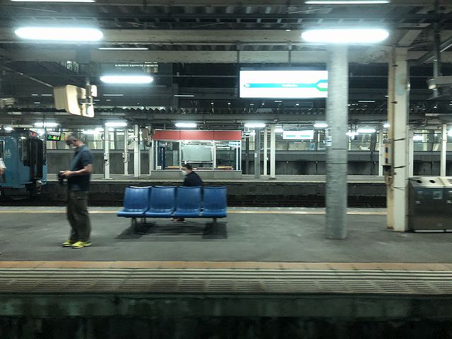 侍浜駅を発車した後も森の中を進む感じですが、次の陸中中野駅の手前で海沿いに。ですがすでに夕方遅くというか夜の手前という空の具合で、急速に暗くなる中、何故か必死になって海を眺めました。ですがとうとう夜の帳が下りてしまい、18時50分に発車した陸中八木駅を過ぎたあたりで外を見るのは終了。あとは、先程の続きと思ってノートパソコンを取り出したものの今回は筆が進まず、膝の上にパソコンを広げたまま、何となく過ごすことに。