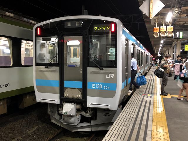 そんな八戸線をこれから走るのが、既にホームに停車していた、18時18分発の八戸行き普通列車。その車両は、現在、線内を走る定期列車(全て普通列車)の全列車に使われている、キハE130系500番台気動車です。