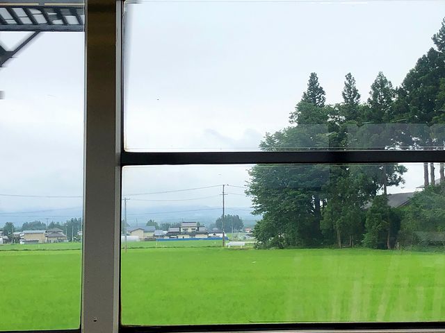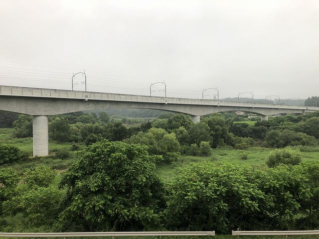 せっかくなので、上半身を90度回転させて車窓からの景色をようとしたものの、窓が少々汚れていて、窓越しの写真はちょっともやっと写るほど。それでもめげずに眺めていると、この区間、昼間に乗るのは約四半世紀ぶり(ひょっとしたらそれ以上かも)にもかかわらず、駅と駅の間などに広がる、荒涼みがある山がちな景色はどこか記憶があるというか。実は今回乗る八戸駅から盛岡駅の間は、昼間に限っても何度か乗ったことがあるんですよね。ただ、以前乗った時と比べてはっきり違うのが、時折り現れる東北新幹線の立派な構造物。個人的に東北新幹線は盛岡駅までしか乗ったことがないので、いつか北海道新幹線の新函館北斗駅まで乗ってみたいですね。