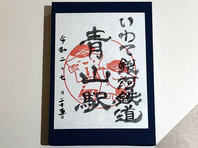 とりあえず改札口を通って待合室を出て駅舎の写真を撮ろうと思ったら、IGRいわて銀河鉄道本社ビルの1階が青山駅南口になっているんですね。で、写真を撮った後は駅に戻り、待合室で暫し待機。というのも鉄印は駅窓口で貰うことになっており、窓口の営業時間は午前8時30分から。あと30分以上あります。ですが、歳のせいかあっという間に時が経ち、鉄印をいただくことが。ちなみに私の他にもう1人、鉄員を貰っている人がいました。