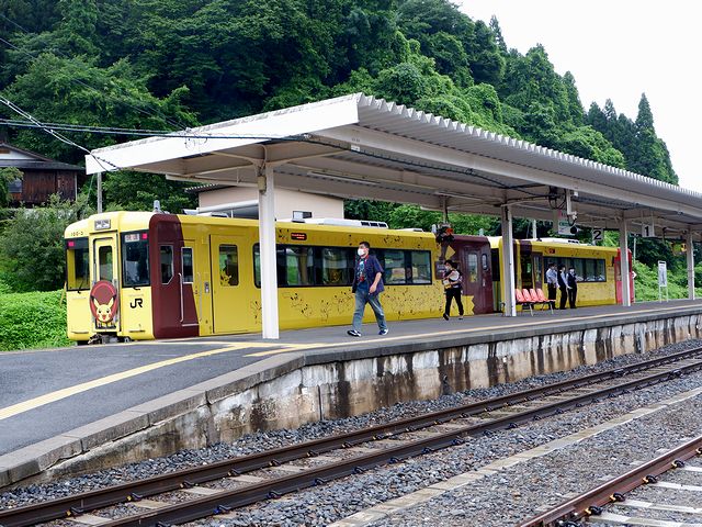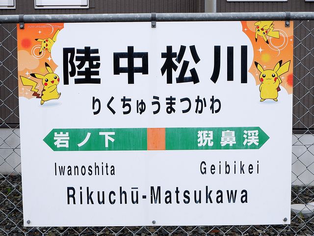 【陸中松川駅に停車中の快速ポケモントレイン気仙沼号】
