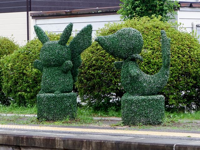 【折壁駅ホームの植木で作られたポケモン】