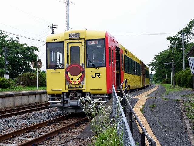 【折壁駅に停車中の快速ポケモントレイン気仙沼号】