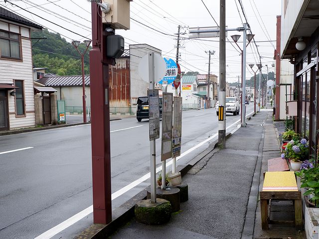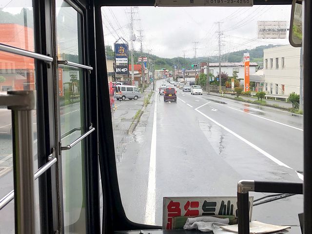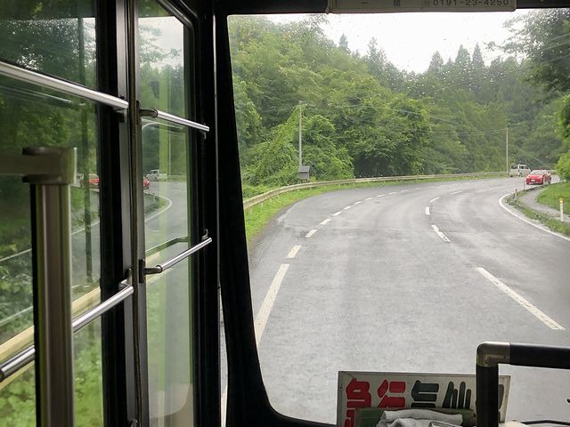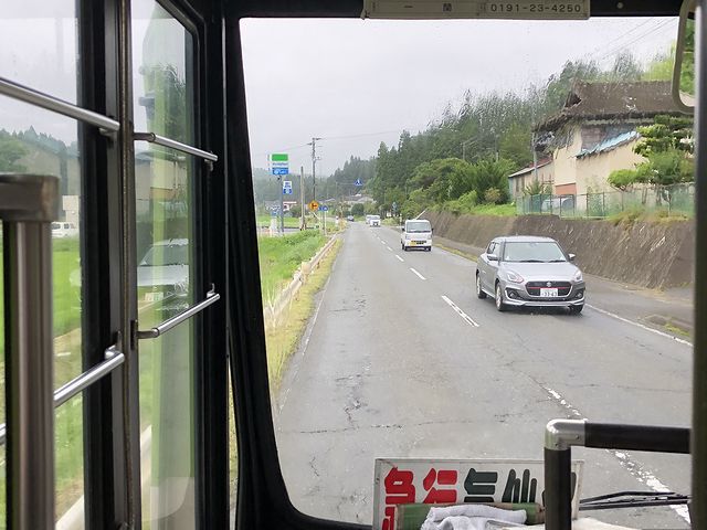 バス先頭部には「急行」と出ていますが、しっかりと制限速度を守り時速50キロで走行。気仙沼駅前停留所を出てから約25分経った頃、高沢停留所で私以外では初めての乗客が1人。その後も気仙沼街道を進むのですが、制限速度を守る路線バスにしびれを切らしたのか、センターラインが破線のところでアルテッツァが強引に抜いていきました。そして千厩駅前停留所を通過して、鍋鉉線に入る大船渡線と別れた後、千厩体育館入口で親子連れが乗車。次の館山下停留所でも1人降車し1人乗車がありましたが、結果的にこれが最後の乗客となれました。