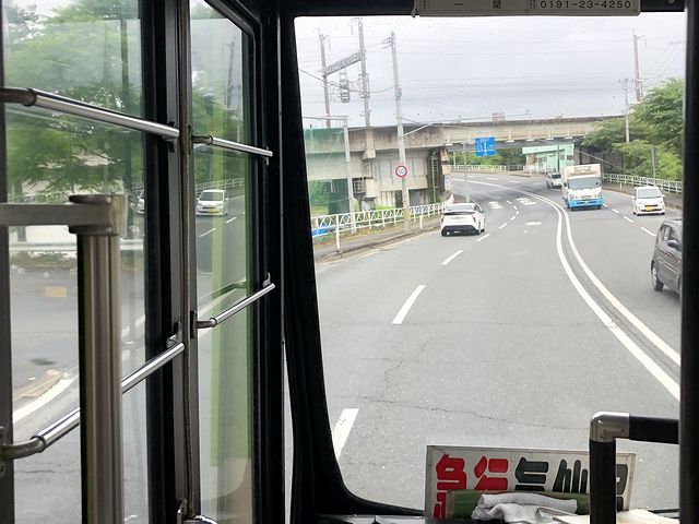 一関駅前行きの路線バスは、約5分遅れて到着。乗り込んだところ、乗客は私1人でした。それで路線バスは、先程大船渡線と並走した気仙沼街道の国道284号を走行。気仙沼駅の前を過ぎると大船渡線をオーバーパスしました。