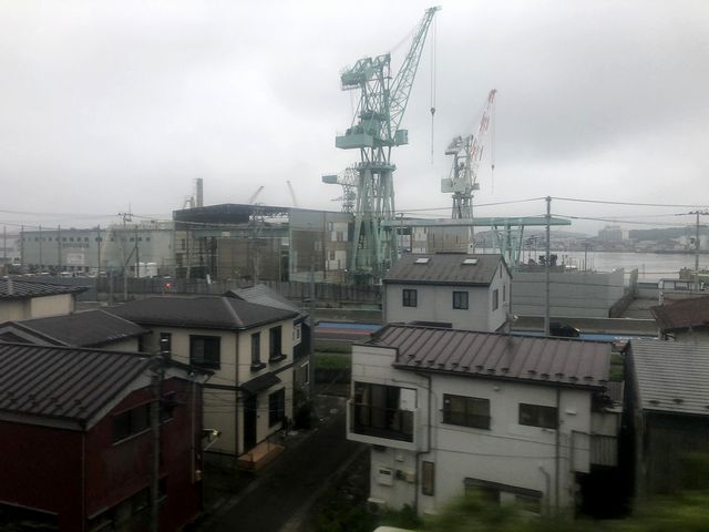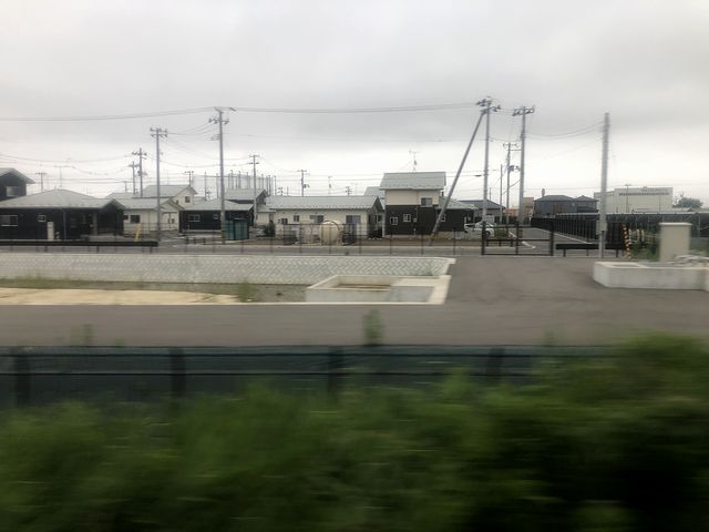 松島海岸駅を出ると、暫くは山の中というか木々の中を走り、再び松島の海が見えたと思ったら市街地へ入って東塩釜駅に停車。最後の列車交換があり、ここから先は複線区間に入ります。そして市街地を走りつつ、ガントリークレーンやマリーナ、そして、東日本大震災の際に津波が押し寄せた映像で見覚えのあるショッピングセンターが過ぎていきます。