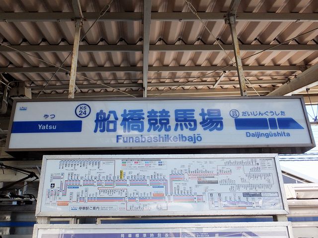 前々記事で書いた京成電鉄の成田駅から特急列車で引き返し、京成船橋で普通列車に乗り換えて、2駅で到着。結構降りる人が居て、「お、船橋競馬場賑わってるなぁ」とちょっと嬉しくなったのですが、駅舎を出たところにららぽーと行きの無料バスが停まっていて、そちらの方に流れて行く人もわりといたりして…。